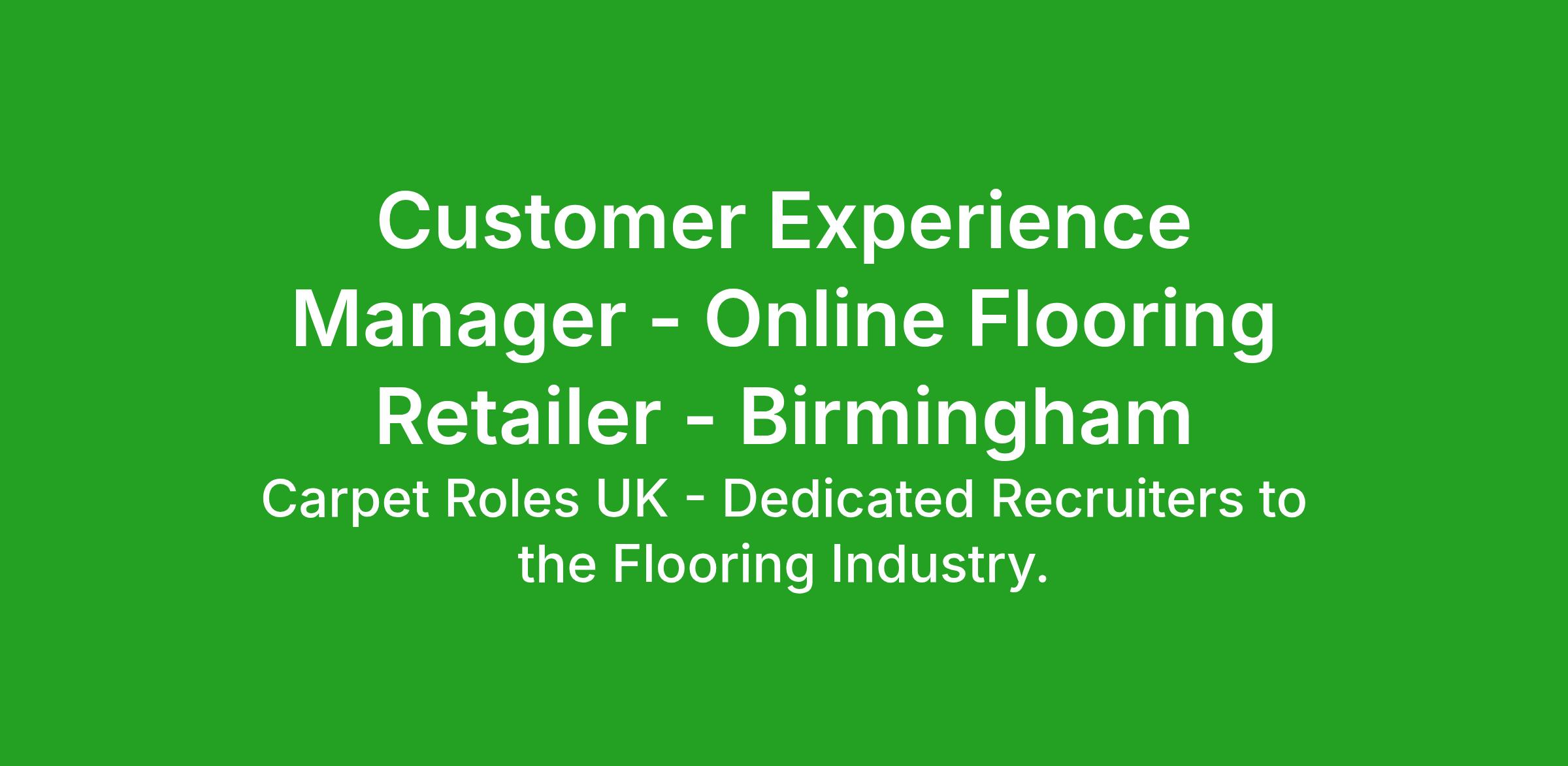 Carpet Roles UK are excited to be assisting a leading Birmingham based online Flooring Seller in their plans to build their senior management team in order to facilitate and manage the excellent growth that they are seeing (started just 5 Years ago) the Business has grown exponentially and now has an impressive logistical network of distribution warehouses and a fast growing team based in the West of Birmingham (Near the M5 at Halesowen exit to approach), in this instance we are seeking a CX Professional that can develop a team, and a senior role for themselves as the Business grows.